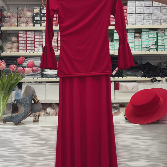 Conjunto flamenca de manga larga en color rojo. Se pueden comprar por separado.