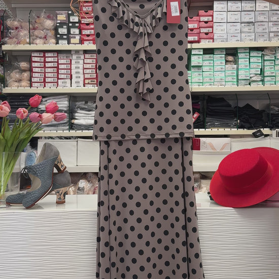 Conjunto flamenca en color marron claro y con topos negros. Se pueden comprar por separado.